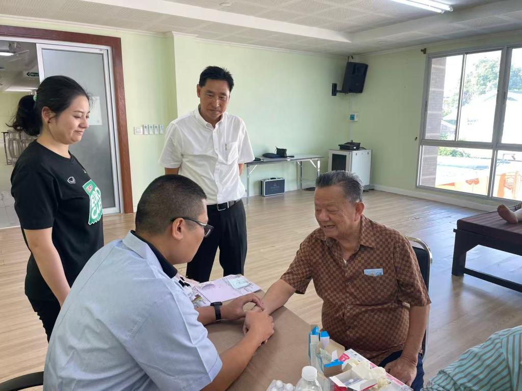 挂牌仪式结束后,朱俊平博士随即在工坊开展了健康指导活动,标志着工坊正式投入运营。自挂牌以来,朱博士已持续在该工坊开展系统的技术培训,为当地医护人员和黎逸皇家大学护理学院师生提供专业指导,同时面向黎逸市民众开展中医保健服务,实现了"挂牌即运营、启动即服务"的无缝衔接。