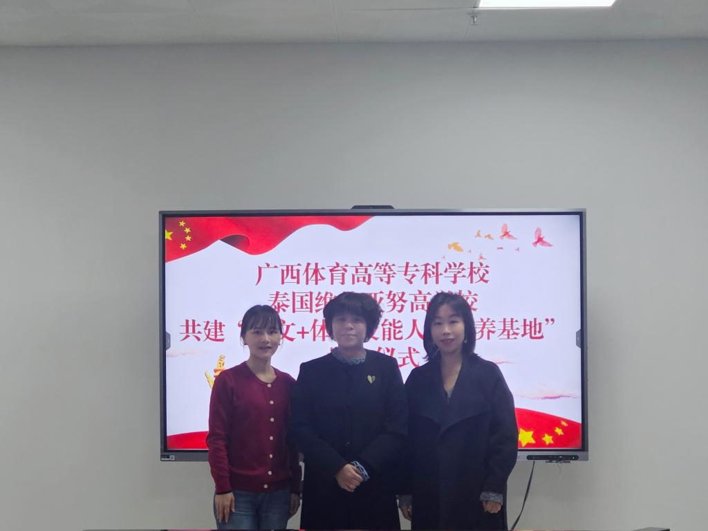 为深化中泰体育教育交流与合作,推动“中文+体育技能”人才培养模式国际化发展,12月29日下午,我校与泰国维他雅努高学校通过线上方式共同举行“中文+体育技能”人才培养基地揭牌仪式。我校副校长黄昀、泰国维他雅努高学校校长KANITTHA PATTARANGGOON等双方代表出席仪式,共同见证两校合作迈向实质推进的新阶段。