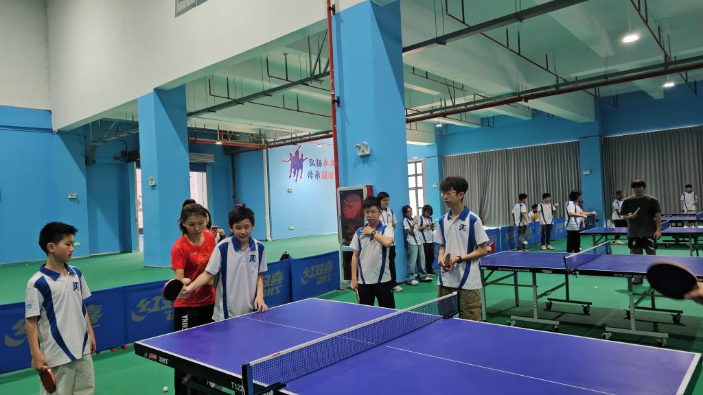 上午11时,乒乓球教学及竞技交流活动正式开始。在乒乓球老师指导下,警讯团成员系统学习了乒乓球基本技术。随后,我校学生与警讯团成员展开了多轮友谊赛,双方切磋球技、互学互鉴,在竞技中增进了解、加深情谊。