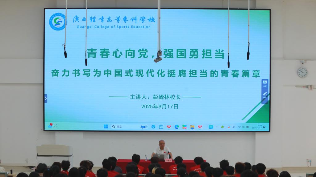 为加强2025级新生思想政治教育,引导广大学子厚植家国情怀,担负起时代赋予的崇高使命,继9月15日,学校党委书记韦建勋以“弘扬抗战精神,勇担时代使命”为题给全体新生上了“开学第一课”,9月17日和18日,学校校长彭峰林、党委副书记邱团、学校纪委书记罗黎造、副校长黄昀、黎胜分别走入思政课堂,以“青春心向党,强国勇担当——奋力书写为中国式现代化挺膺担当的青春篇章”为题,为2025级新生讲授了一堂深刻而富有意义的“开学第一堂思政课”。