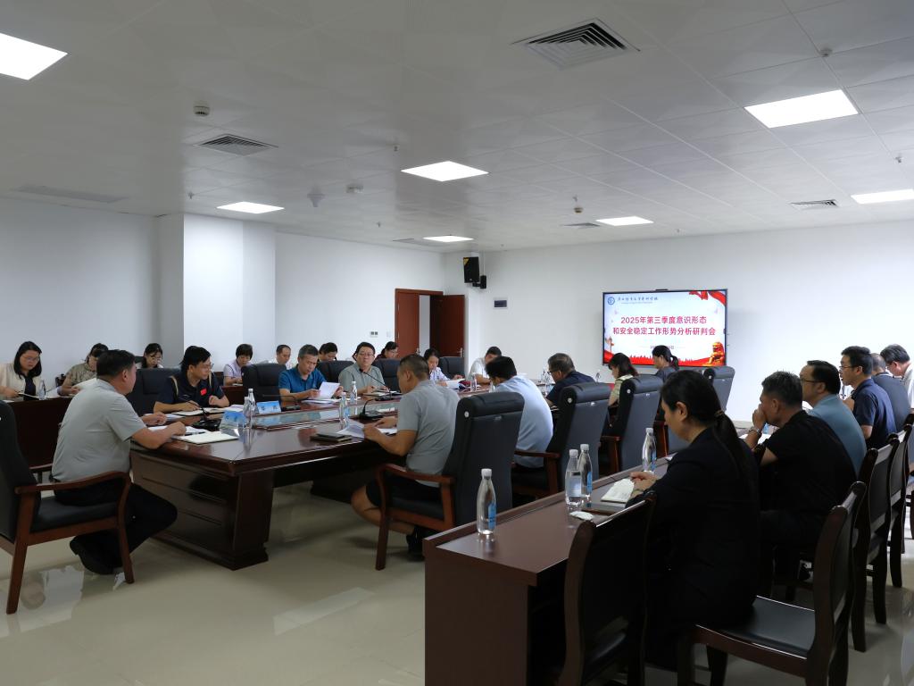 9月29日,学校在办公楼1213会议室召开2025年第三次意识形态和安全稳定工作分析研判会。党委副书记邱团主持会议,副校长黎胜参加会议并讲话。各部门(中心)主要负责人,各二级学院党总支书记参加会议。