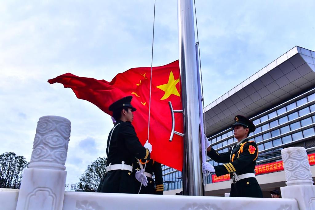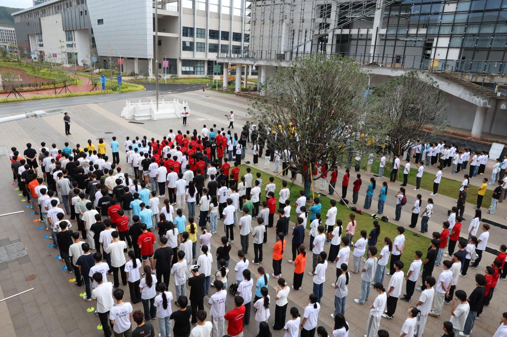 为庆祝中华人民共和国成立76周年,弘扬爱国主义精神,涵养家国情怀。9月29日,我校在相思湖校区正门广场举行了“家国同心,强国有我”主题升旗仪式,七百余名师生代表共同参与。