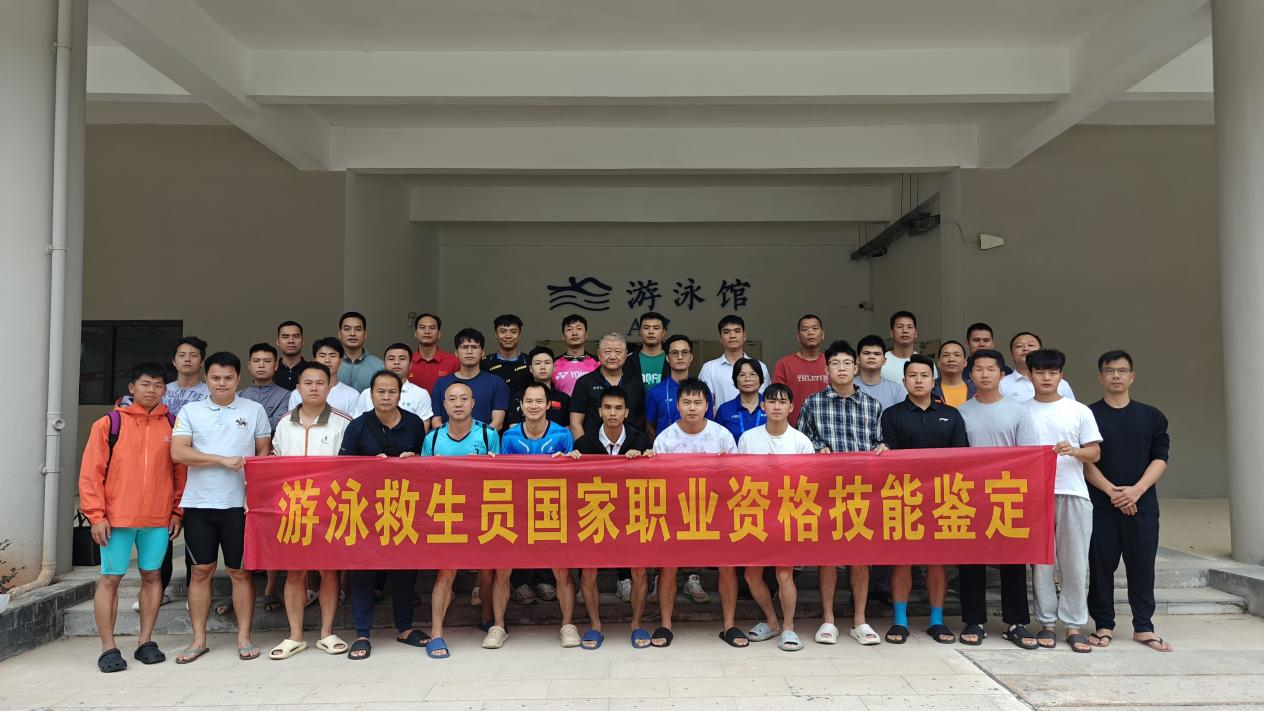 参加游泳救生员国家职业资格技能鉴定的学员合影