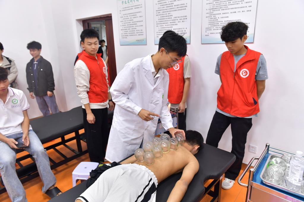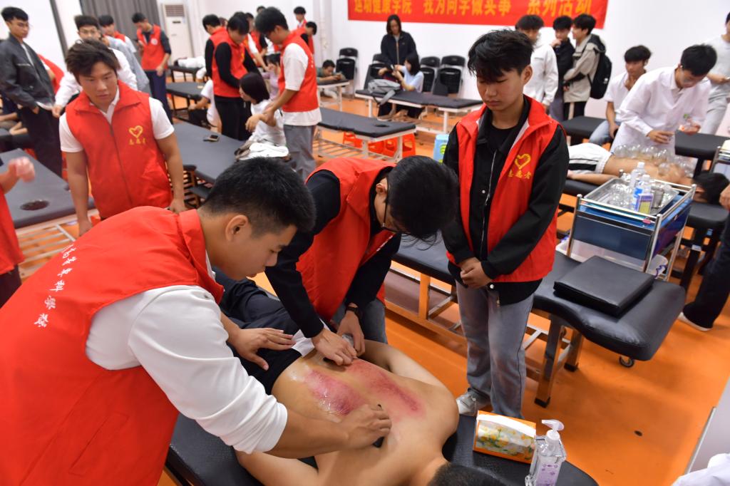 志愿者为同学提供“拔罐”服务