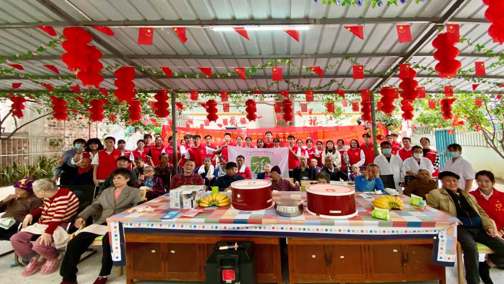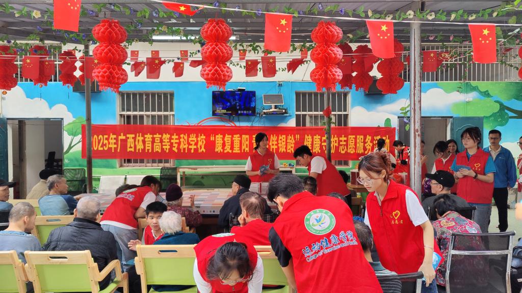 金秋送爽,丹桂飘香。在重阳佳节来临之际,为弘扬中华民族尊老、敬老、爱老、助老的传统美德,2025年10月29日,我校“体卫先锋”志愿服务队与学校康复协会共30名志愿者,联合石埠街道办石埠社区,走进南宁市一孝石埠护老院,举办“康复重阳•青春伴银龄”主题志愿服务活动。