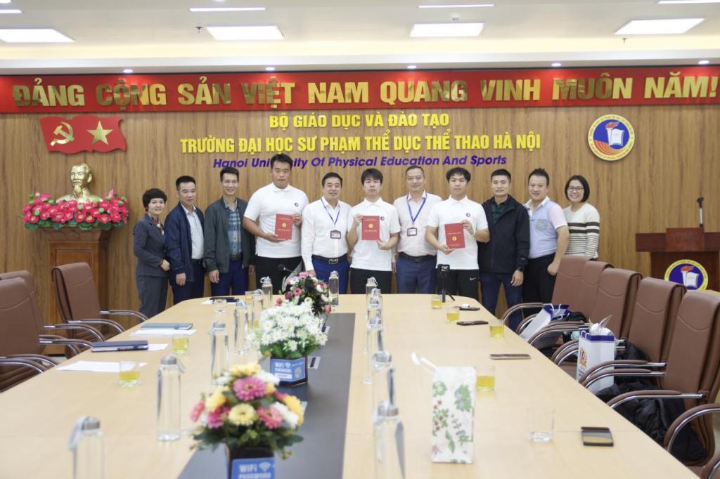 越南河内体育师范大学校长为我校学子颁发结业证书