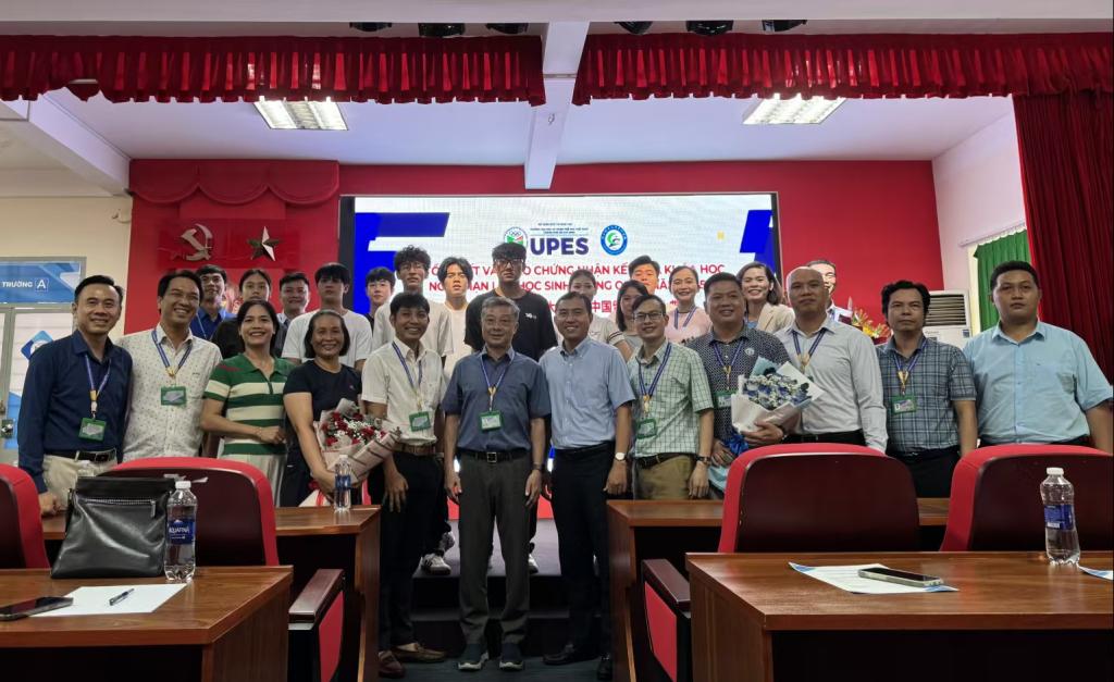 我校学子与越南胡志明市体育师范大学校领导的结业典礼合影留念