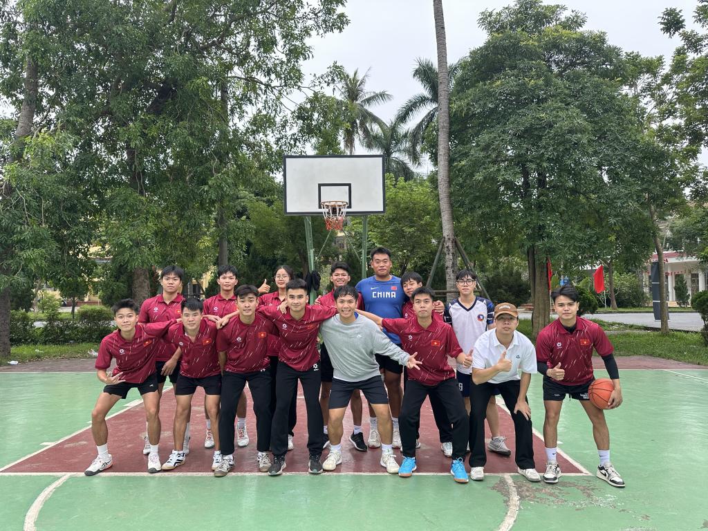 我校学子与越南河内体育师范大学师生的篮球课合影留念