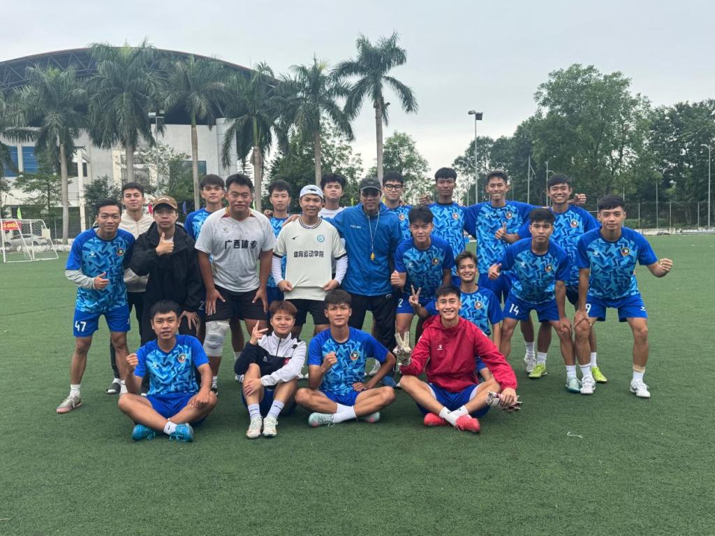 我校学子与越南河内体育师范大学师生的足球课合影留念