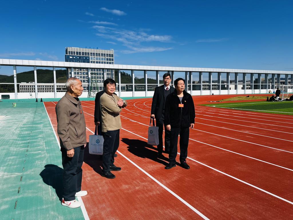 退休党员参观新校区田径场