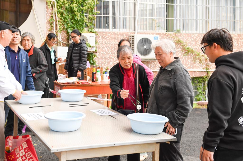 活动精心设置了转盘抽奖、趣味套圈、夹乒乓球、保龄足球、抛球进篮等多个项目,形式多样、趣味盎然。老同志们兴致勃勃地参与其中,或专注转盘抽奖,或轻松尝试套圈,或稳健夹取乒乓球,现场气氛热烈,笑声不断。各类游戏挑战成功后均可兑换相应奖品,让老同志们在轻松愉悦中满载而归。